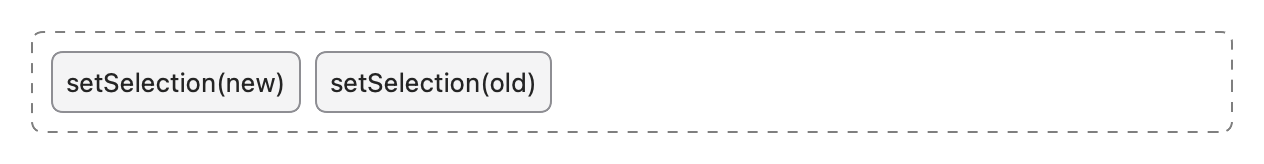 Before that runs, however, the text is updated, and updateNSView happens. It will set the attributed string, which in turn causes the selection to change, which adds another setSelection to the queue (with the old selection value). The main queue now looks like this: